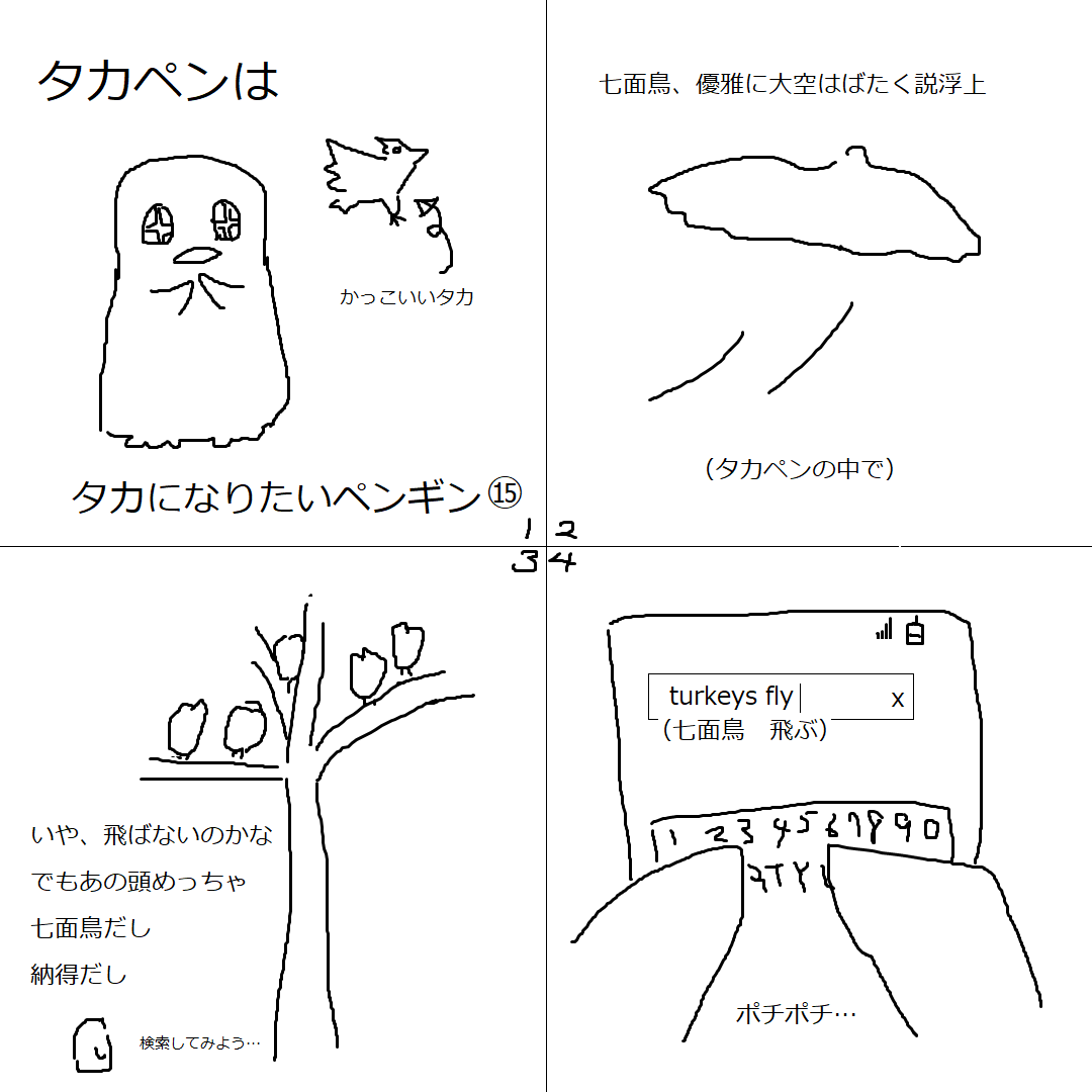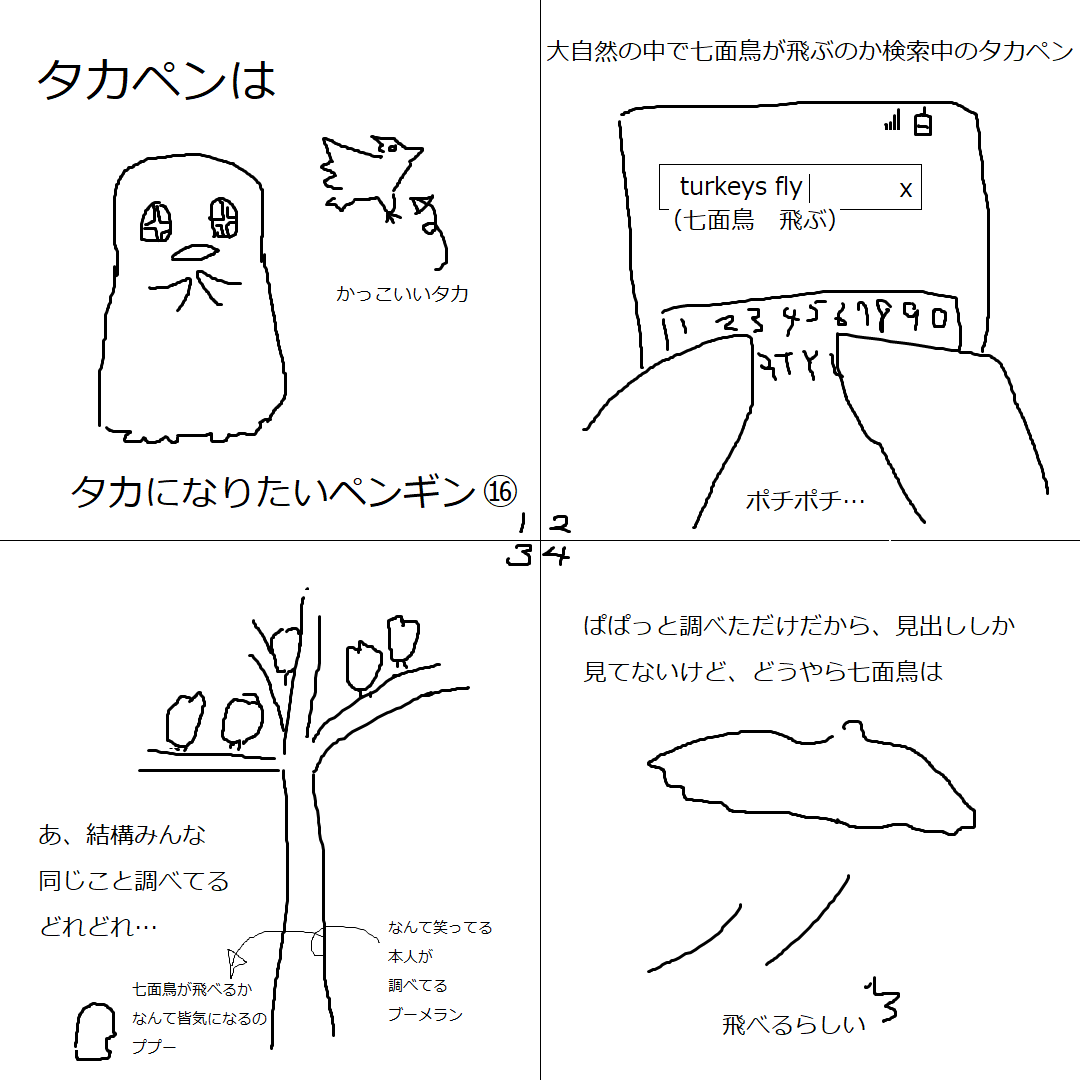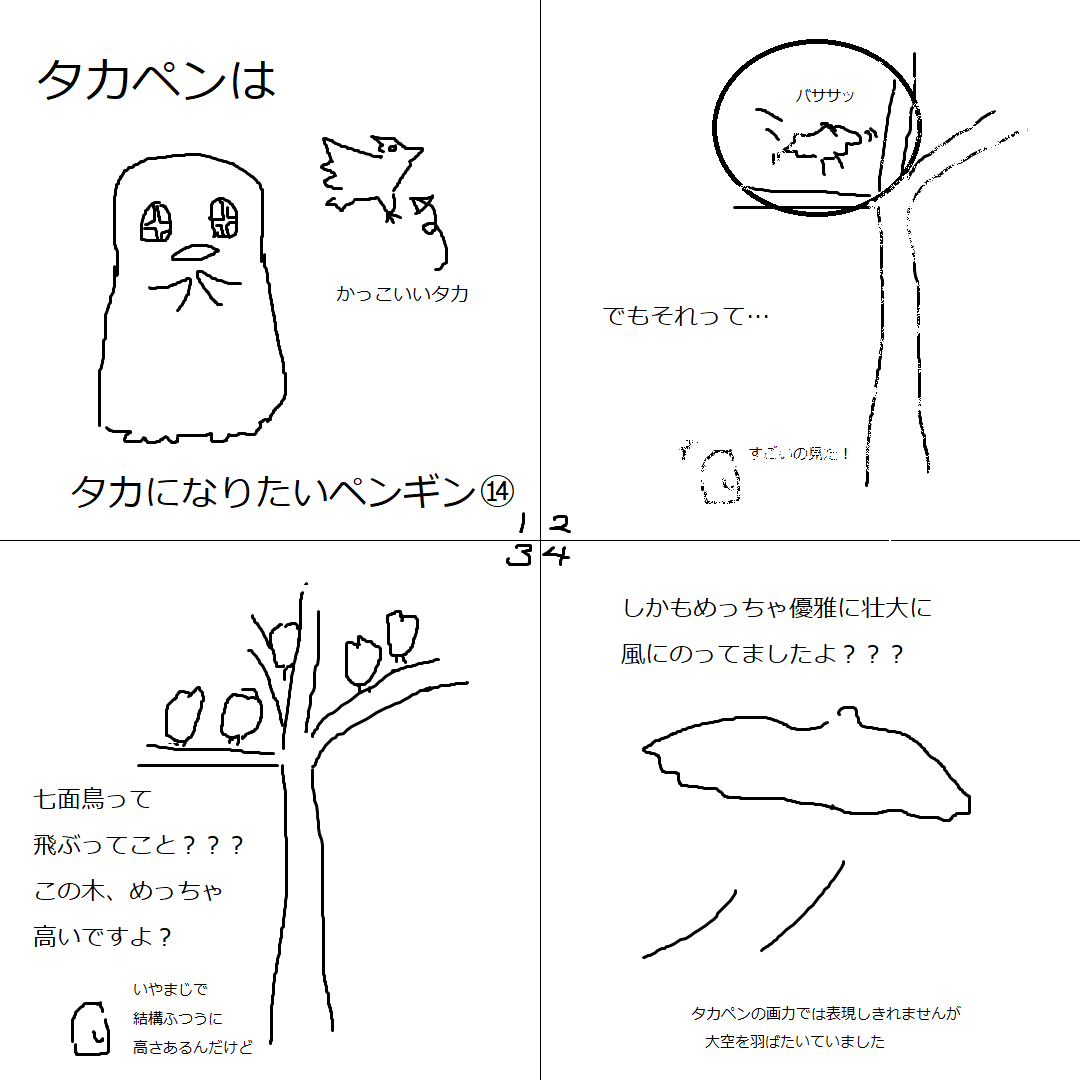 【四コマ漫画】タカペンはタカになりたいペンギン13~16